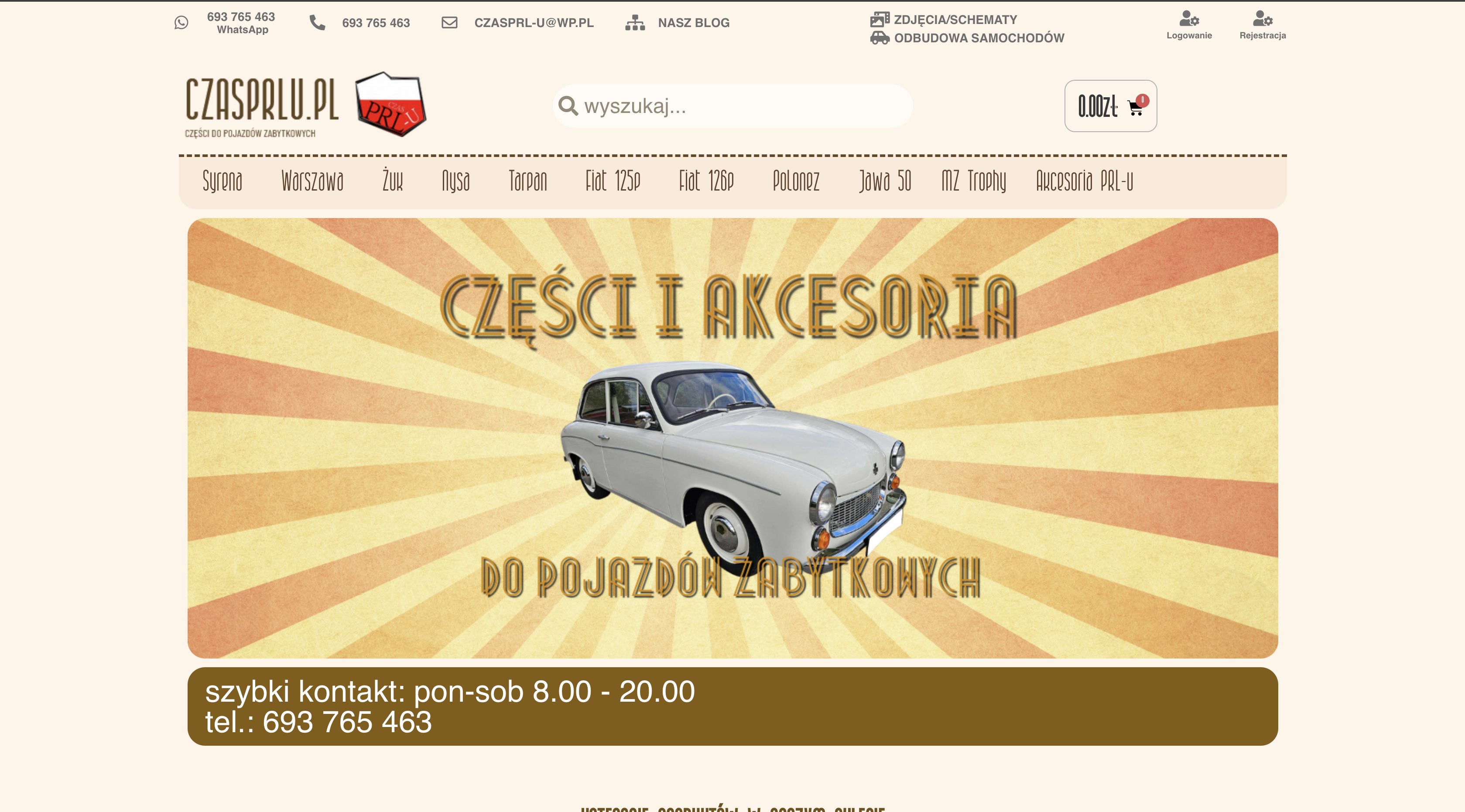 W ramach tego projektu stworzyliśmy nowoczesny sklep internetowy z możliwością logowania i rejestracji użytkowników. Dzięki temu każdy entuzjasta motoryzacji z lat PRL-u może zamawiać wysokiej jakości części zamienne oraz autentyczne akcesoria do pojazdów zabytkowych. Sklep umożliwia wybór formy zapłaty oraz metodę przesyłki. Jest atrakcyjny graficznie, stylistyką nawiązuje do czasów PRLu.